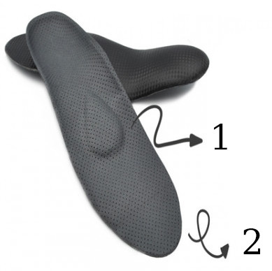 - Dodatkowo wkładki Comfort Plus Reduce P wyścielone są miękkim materiałem na przodostopiu (2), w celu odciążenia mocno przeciążonych struktur.
