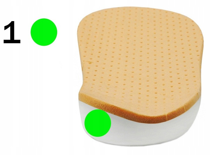 Wkładki "Correct S" posiadają wklejony specjalny klin korygujący, z podniesieniem po wewnętrznej strony (1). Tak by zmusić stopy do korekcji, a co za tym idzie całe kończyny dolne do prawidłowej postawy ciała. Dodatkowo klin zapobiega pogłębianiu się wady.