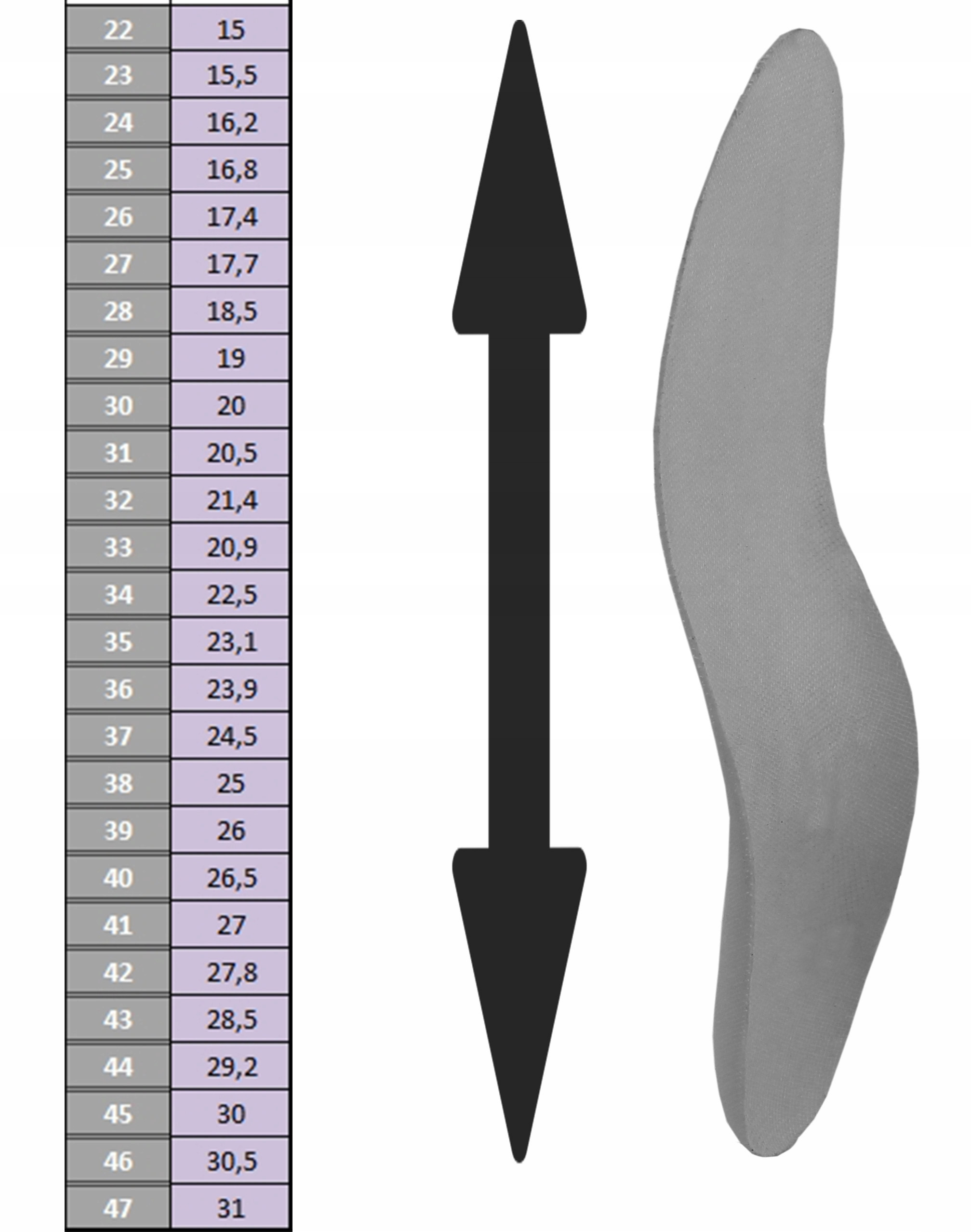 Rozmiary: 35 - 46 (wkładki są wąskie - nadają się do każdego typu obuwia)